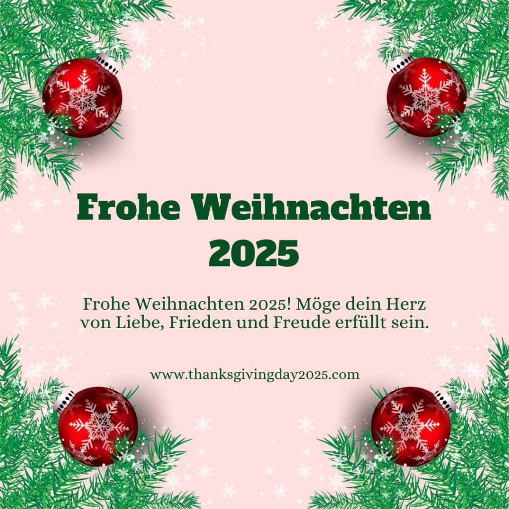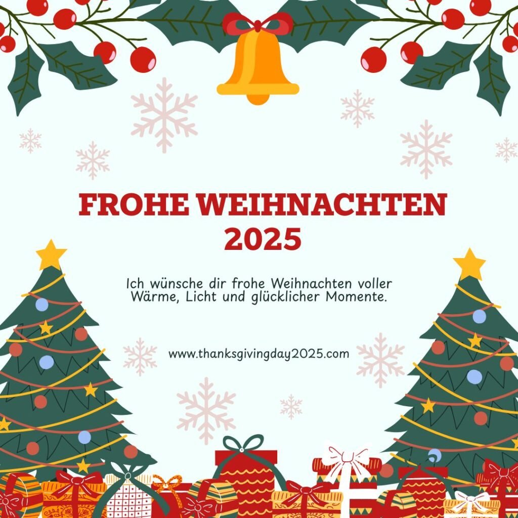 Frohe Weihnachten 2025 ist eine besondere Zeit des Jahres, in der Liebe, Frieden, Freude und Zusammenhalt im Mittelpunkt stehen. Wenn der Dezember naht, füllen sich Häuser mit warmem Licht, festlicher Dekoration und dem Duft von Plätzchen und Tannenzweigen. Weihnachten 2025 ist nicht nur ein religiöses Fest, sondern auch ein emotionaler Moment, um innezuhalten, Dankbarkeit zu zeigen und wertvolle Zeit mit Familie und Freunden zu verbringen. Menschen auf der ganzen Welt teilen Weihnachtswünsche, versenden Weihnachtsgrüße, posten Weihnachtsbilder in sozialen Medien und verschicken herzliche WhatsApp-Nachrichten, um ihre Gefühle auszudrücken. Frohe Weihnachten 2025 steht für Hoffnung, neue Anfänge und das stille Glück, das aus kleinen Gesten entsteht.